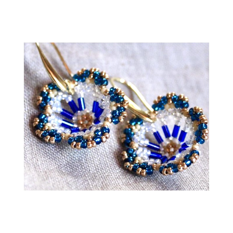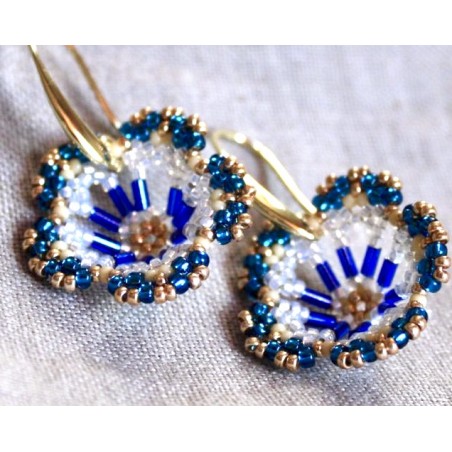 Fleurs Bijoux Miyuki tissés main, et montées en boucles d'oreilles, crochets or goldfilled 14K