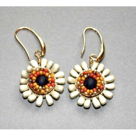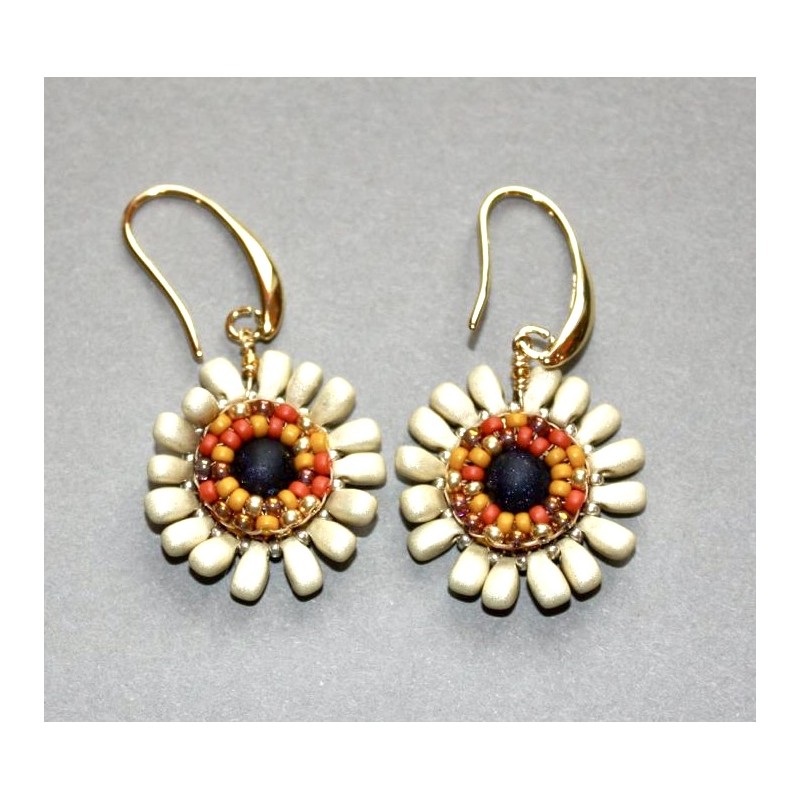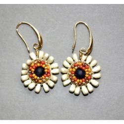 Fleurs Bijoux Miyuki tissés main, et montées en boucles d'oreilles, crochets or goldfilled 14K