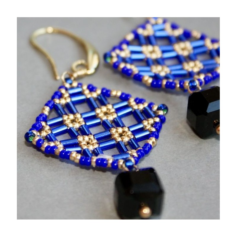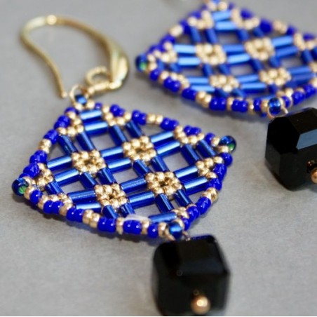 Dentelles Bijoux Miyuki tissés main, et montées en boucles d'oreilles, crochets or goldfilled 14K