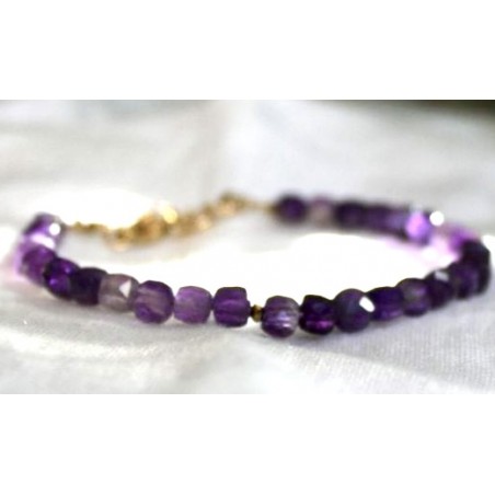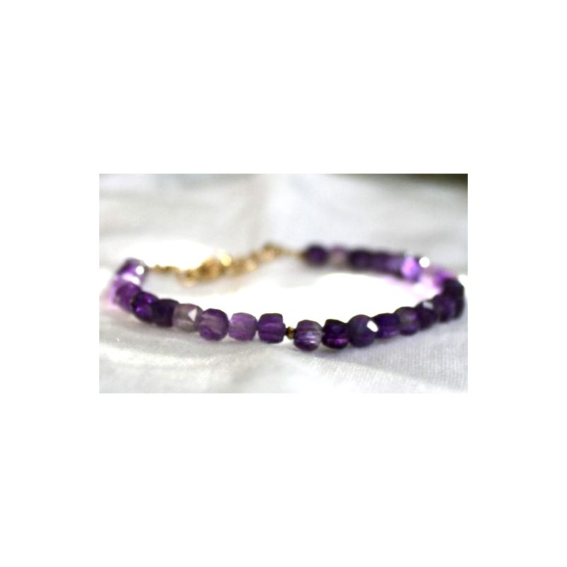 Bracelet monté avec des perles  en améthyste, taille facettes sur perles carré  (pierre fine) et hématites